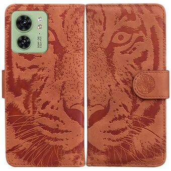 For Motorola Edge 40 Tiger Embossing Pattern Leather Phone Case(Brown)