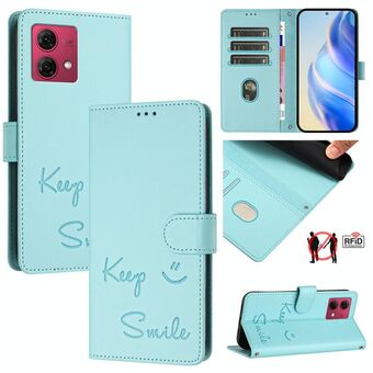 For Motorola Moto G84 5G Smile Embossing RFID Leather Phone Case(Mint Green)