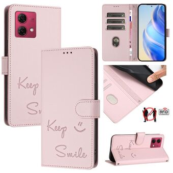 For Motorola Moto G84 5G Smile Embossing RFID Leather Phone Case(Pink)