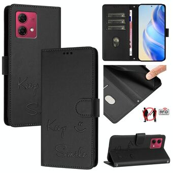 For Motorola Moto G84 5G Smile Embossing RFID Leather Phone Case(Black)