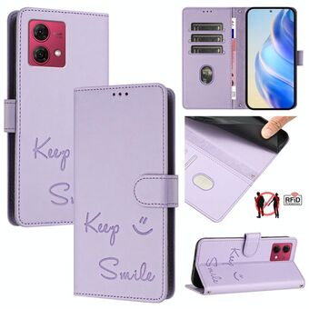 For Motorola Moto G54 Brazil Version Smile Embossing RFID Leather Phone Case(Light Purple)