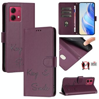 For Motorola Moto G84 5G Smile Embossing RFID Leather Phone Case(Violet)