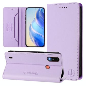 For Motorola Moto E7 Power RC01 Dual-Folded Magnetic Suction RFID Leather Phone Case(Light Purple)