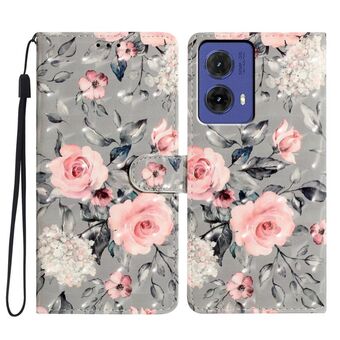 For Motorola Moto G85 3D Pattern Leather Phone Case(Gray Base Flower)