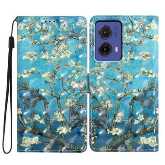 For Motorola Moto G85 3D Pattern Leather Phone Case(Blue Base Apricot Flower)
