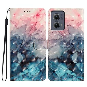 For Motorola Edge 2024 3D Pattern Leather Phone Case(3D Pink Blue Marble)