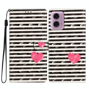 For Motorola Moto G24 3D Pattern Leather Phone Case(Striped Heart)
