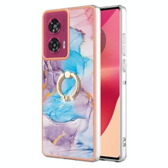 For Motorola Edge 50 Fusion Electroplating Pattern IMD TPU Shockproof Case with Rhinestone Ring Holder(Milky Way Blue Marble)
