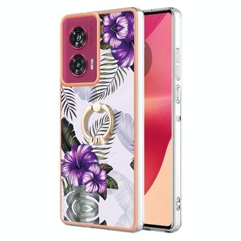 For Motorola Edge 50 Fusion Electroplating Pattern IMD TPU Shockproof Case with Rhinestone Ring Holder(Purple Flower)
