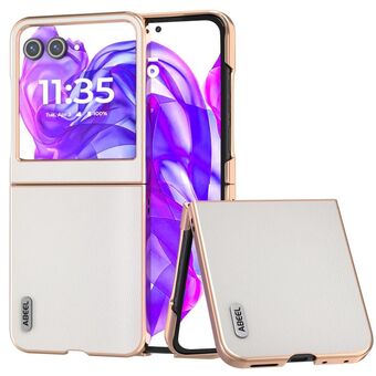 For Motorola Razr 50 ABEEL Electroplated Frame Genuine Leather Elegant Phone Case(White)
