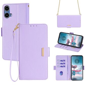 For Motorola Moto G34 5G Crossbody Chain Leather Phone Case(Purple)