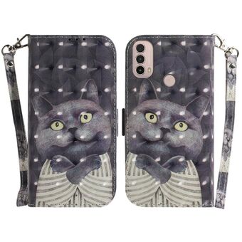 For Motorola Moto E20 / E30 / E40 3D Colored Horizontal Flip Leather Phone Case(Cute Cat)