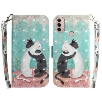 For Motorola Moto E20 / E30 / E40 3D Colored Horizontal Flip Leather Phone Case(Hug Cat)