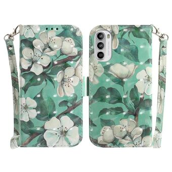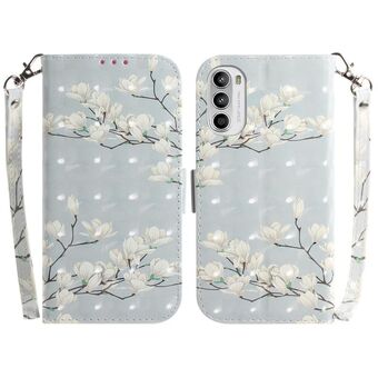 For Motorola Moto G52 3D Colored Horizontal Flip Leather Phone Case(Magnolia)