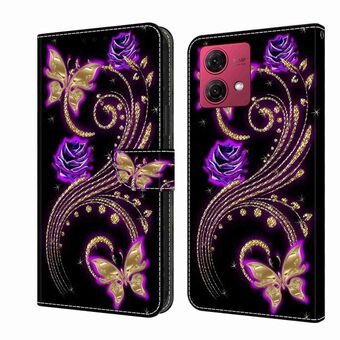 For Motorola Moto G84 Crystal 3D Shockproof Protective Leather Phone Case(Purple Flower Butterfly)