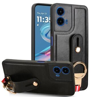 For Motorola Moto G45 5G Wristband Leather Back Phone Case(Black)