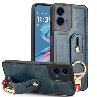 For Motorola Moto G45 5G Wristband Leather Back Phone Case(Blue)