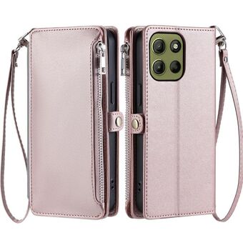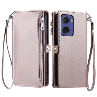 For Motorola Moto G15 Leather Stitching Multi-card Slot Zipper Phone Case(Rose Gold)