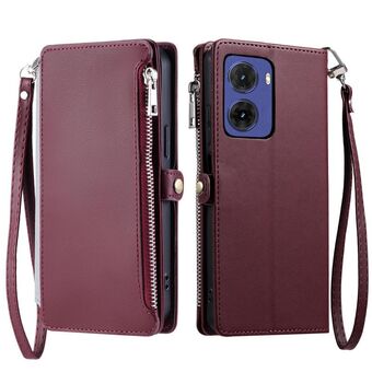 For Motorola Moto G15 Leather Stitching Multi-card Slot Zipper Phone Case(Wine Red)