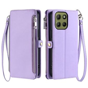 For Motorola Moto G15 Leather Stitching Multi-card Slot Zipper Phone Case(Purple)