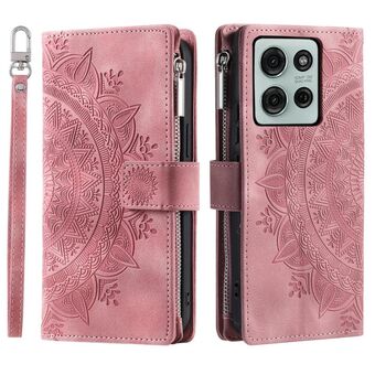 For Motorola Moto G75 5G Multi-Card Totem Zipper Leather Phone Case(Pink)