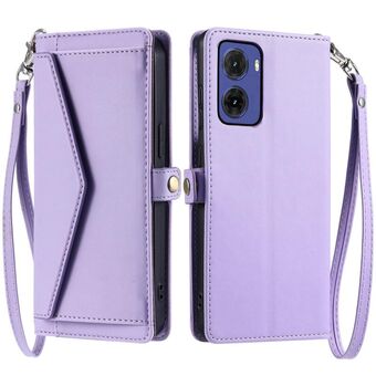 For Motorola Moto G15 Wallet Multi-card Slot Leather Phone Case with Lanyard(Purple)