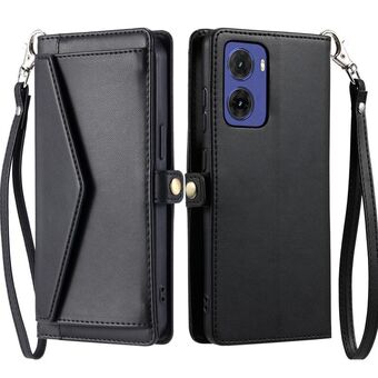 For Motorola Moto G15 Wallet Multi-card Slot Leather Phone Case with Lanyard(Black)