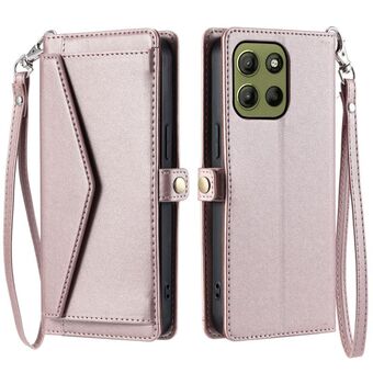 For Motorola Moto G15 Wallet Multi-card Slot Leather Phone Case with Lanyard(Rose Gold)