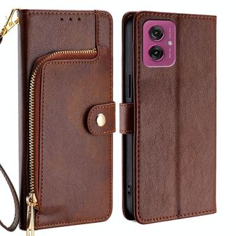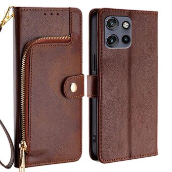 For Motorola Moto G55 5G Zipper Bag Leather Phone Case(Brown)