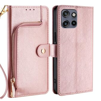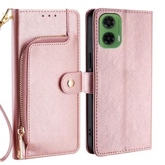For Motorola Moto G35 5G Zipper Bag Leather Phone Case(Rose Gold)