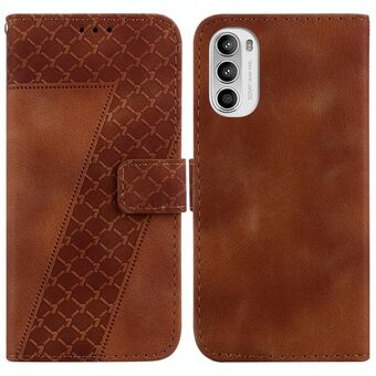 For Motorola Moto G62 5G Seven-shaped Embossed Leather Phone Case(Brown)