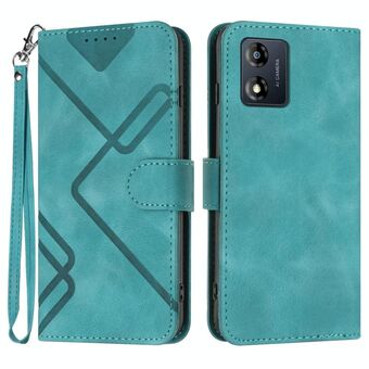 For Motorola Moto E13 Line Pattern Skin Feel Leather Phone Case(Light Blue)
