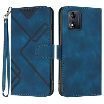 For Motorola Moto E13 Line Pattern Skin Feel Leather Phone Case(Royal Blue)