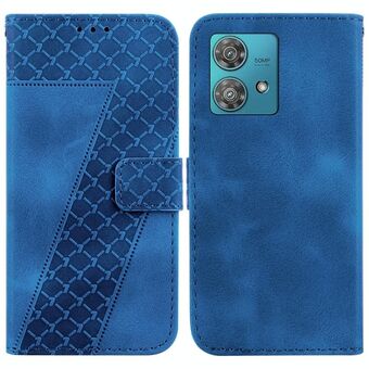 For Motorola Edge 40 Neo Seven-shaped Embossed Leather Phone Case(Blue)