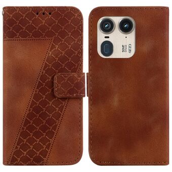 For Motorola Edge 50 Ultra Seven-shaped Embossed Leather Phone Case(Brown)