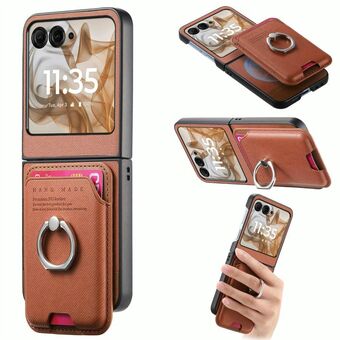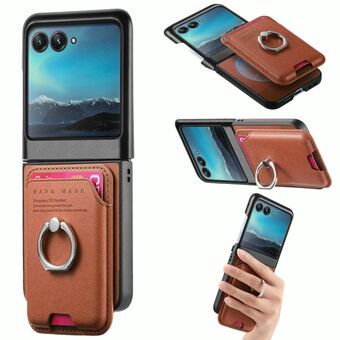 For Motorola Moto Razr 50 / 60 Twill Fabric Card Bag Ring Magnetic Back Phone Case(Brown)
