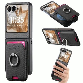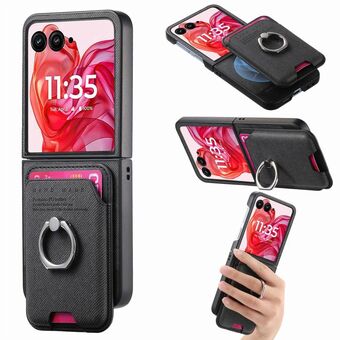For Motorola Moto Razr 50 / 60 Twill Fabric Card Bag Ring Magnetic Back Phone Case(Black)
