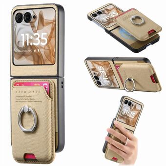 For Motorola Moto Razr 50 / 60 Twill Fabric Card Bag Ring Magnetic Back Phone Case(Khaki)