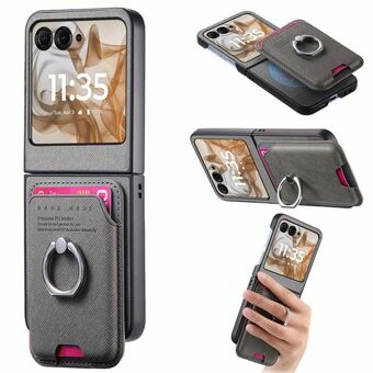 For Motorola Moto Razr 50 / 60 Twill Fabric Card Bag Ring Magnetic Back Phone Case(Gray)