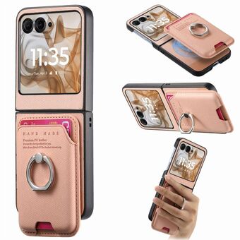 For Motorola Moto Razr 50 / 60 Twill Fabric Card Bag Ring Magnetic Back Phone Case(Pink)