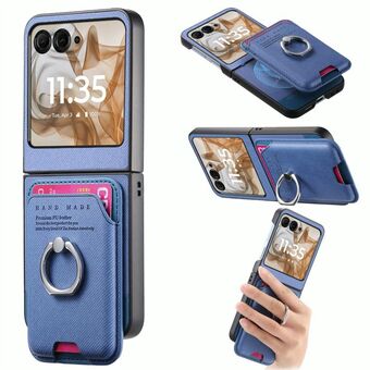 For Motorola Moto Razr 50 / 60 Twill Fabric Card Bag Ring Magnetic Back Phone Case(Blue)