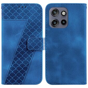 For Motorola Edge 50 Neo 5G Global Seven-shaped Embossed Leather Phone Case(Blue)
