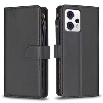 For Motorola Moto G13 4G / G23 4G / G53 5G 9 Card Slots Zipper Wallet Leather Flip Phone Case(Black)