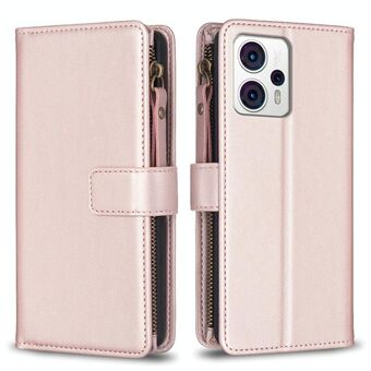 For Motorola Moto G13 4G / G23 4G / G53 5G 9 Card Slots Zipper Wallet Leather Flip Phone Case(Rose Gold)
