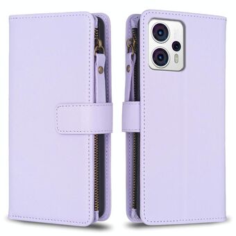 For Motorola Moto G13 4G / G23 4G / G53 5G 9 Card Slots Zipper Wallet Leather Flip Phone Case(Light Purple)