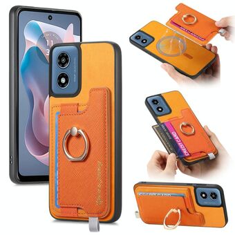 For Motorola Moto G Play 2024 4G Retro Magsafe Cross Leather Ring Holder Card Bag Phone Case(Yellow)