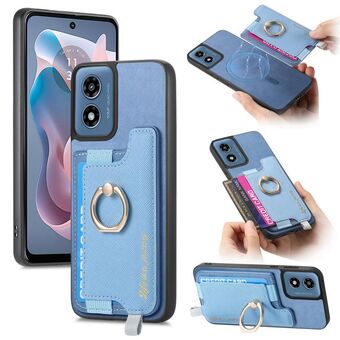 For Motorola Moto G Play 2024 4G Retro Magsafe Cross Leather Ring Holder Card Bag Phone Case(Blue)