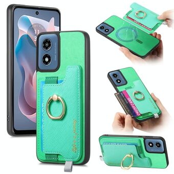 For Motorola Moto G Play 2024 4G Retro Magsafe Cross Leather Ring Holder Card Bag Phone Case(Green)