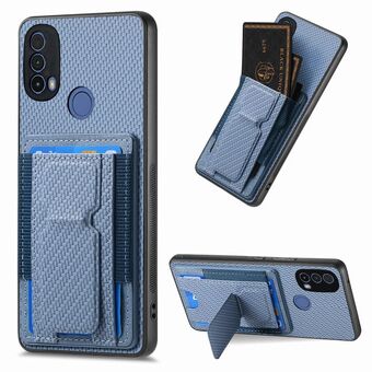 For Motorola Moto E40 Carbon Fiber Fold Stand Elastic Card Bag Phone Case(Blue)