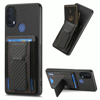 For Motorola Moto E40 Carbon Fiber Fold Stand Elastic Card Bag Phone Case(Black)
